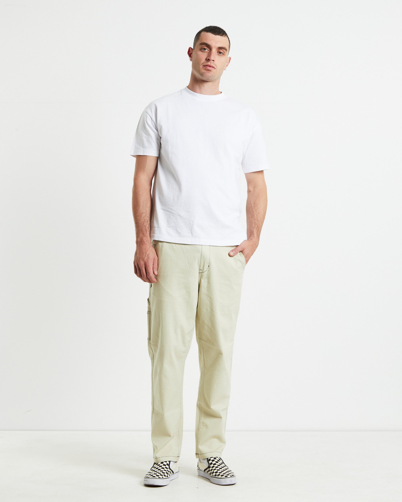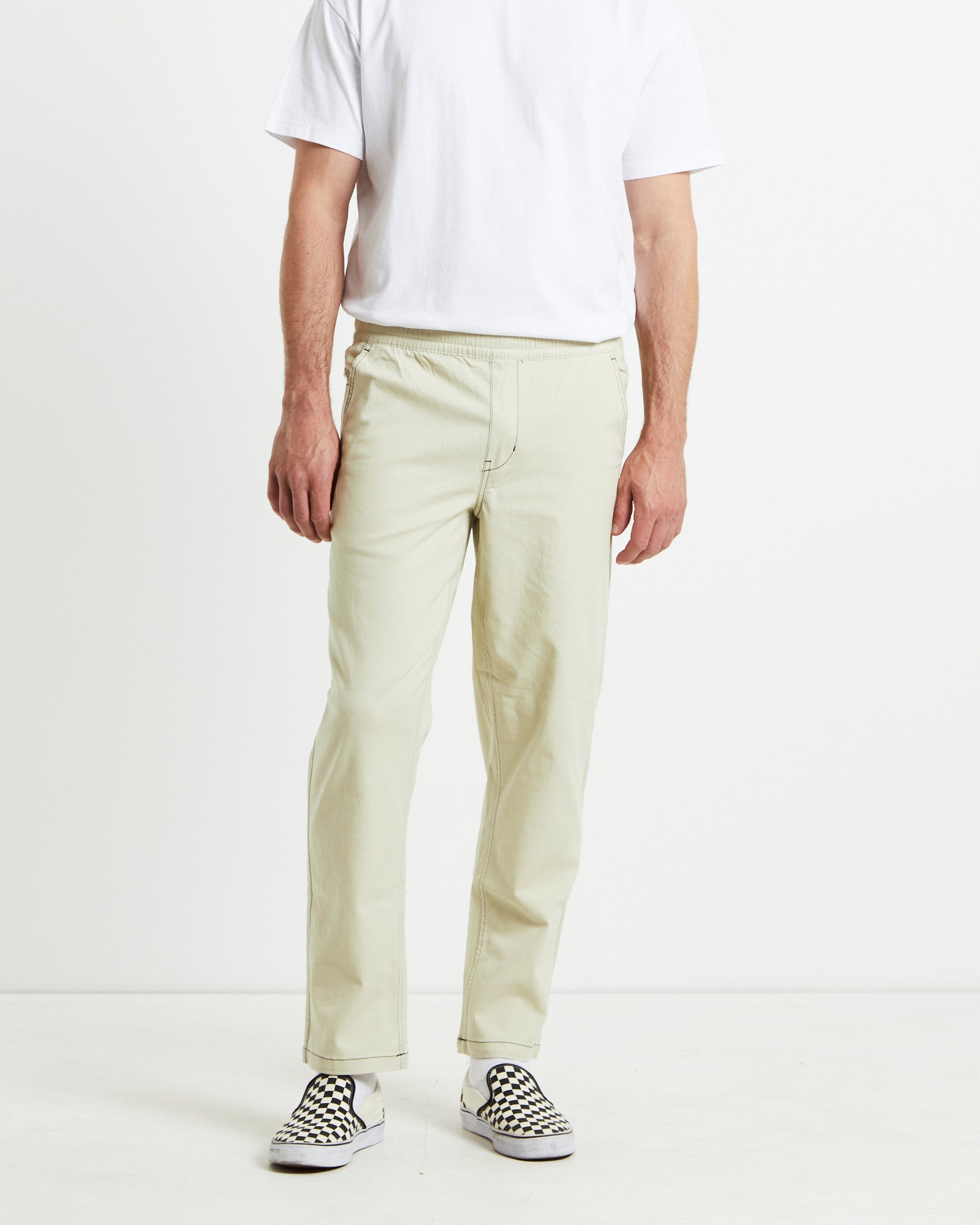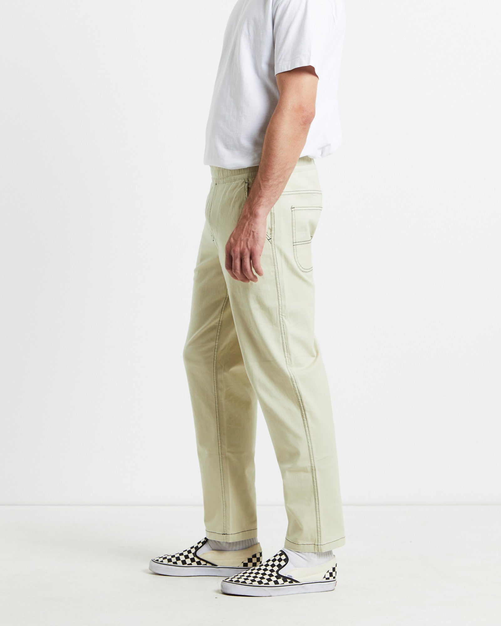 Contrast Stitch Pants Cream