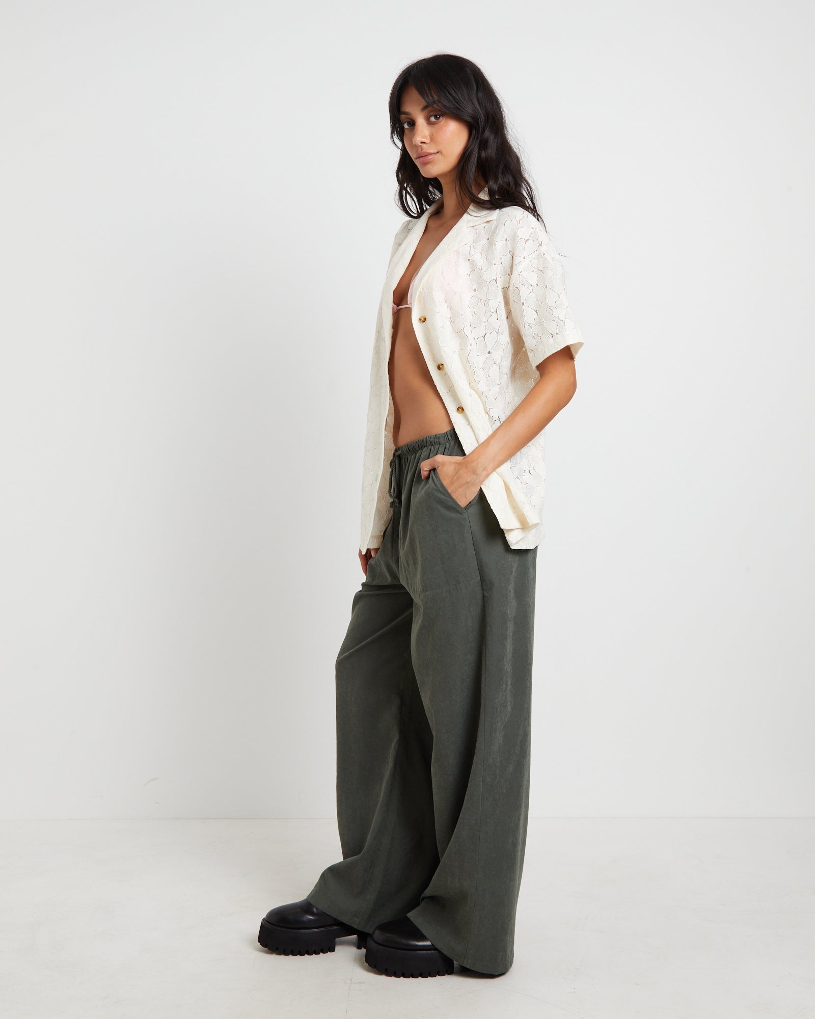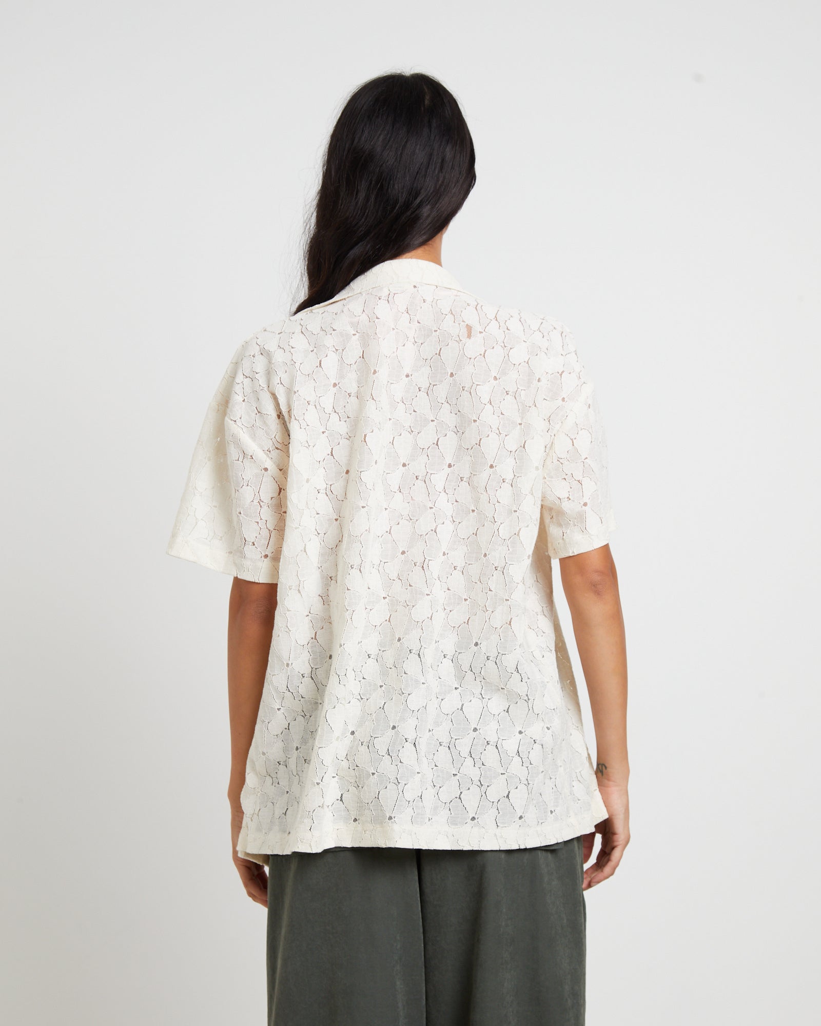 Fade Lace Short Sleeve Shirt in Cream