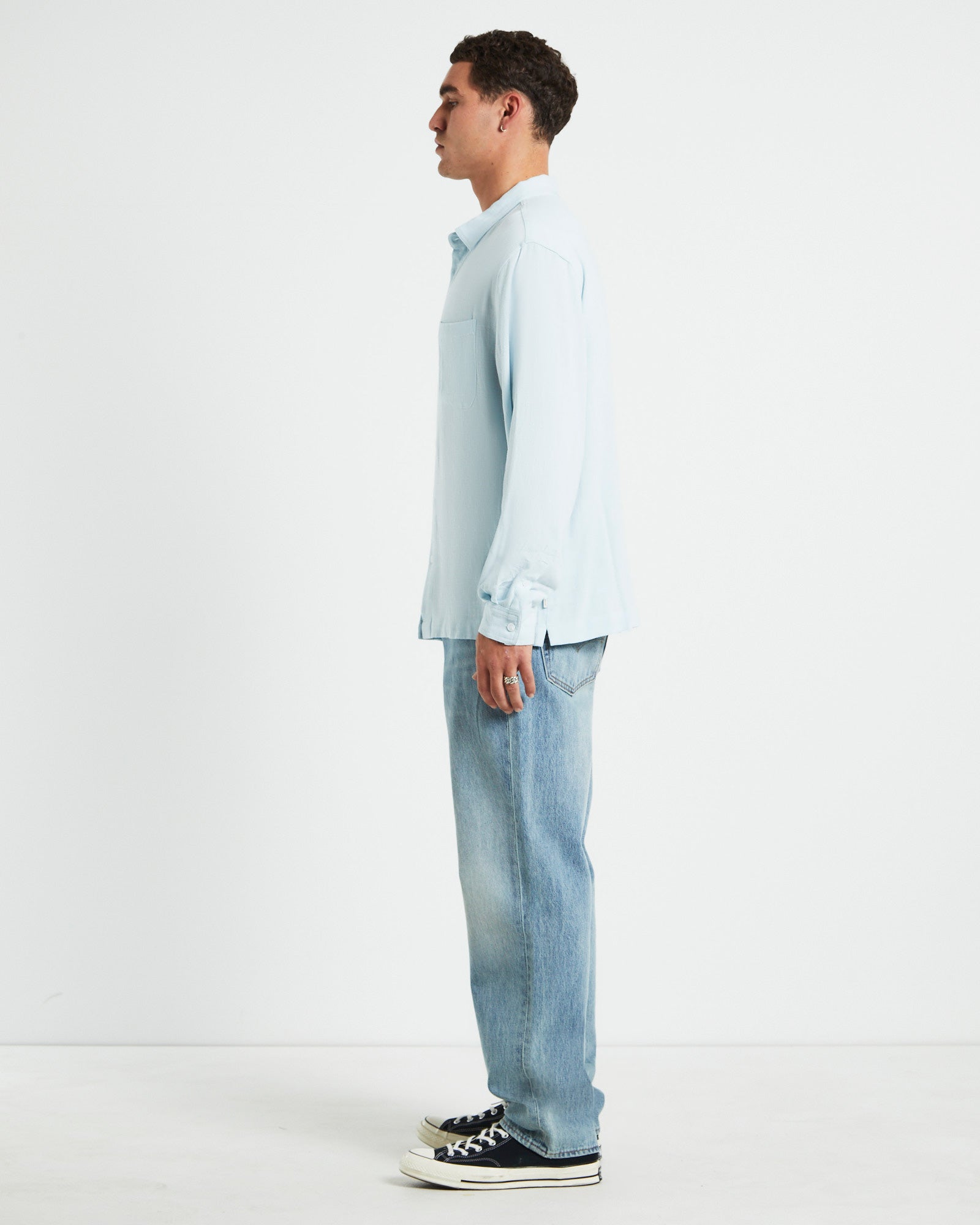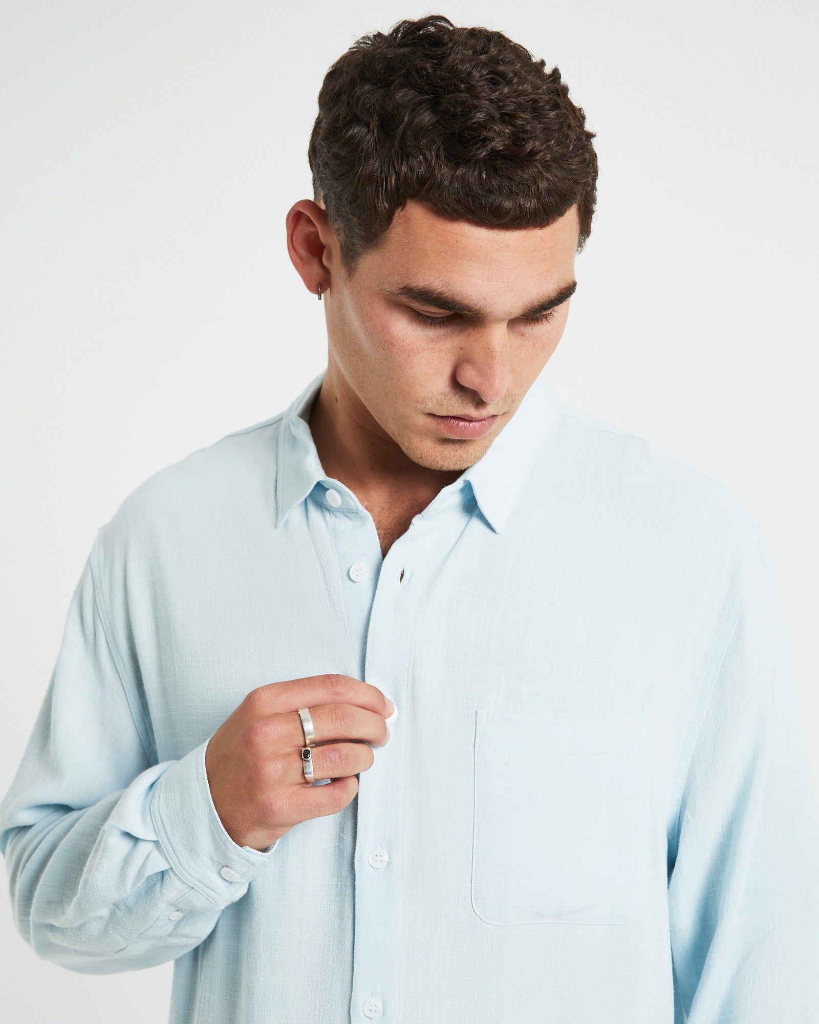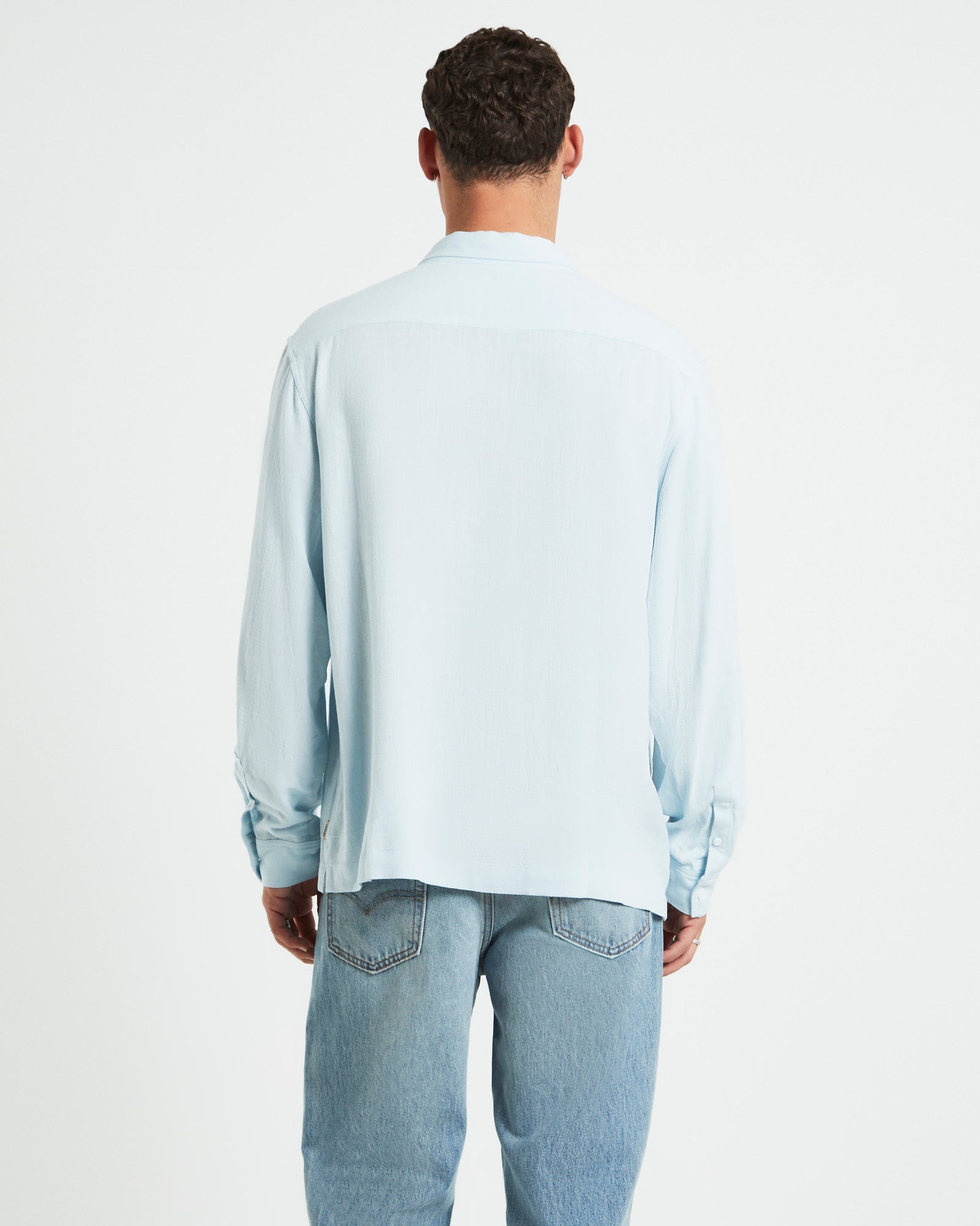 Harrison Linen Long Sleeve Shirt in Sky Blue