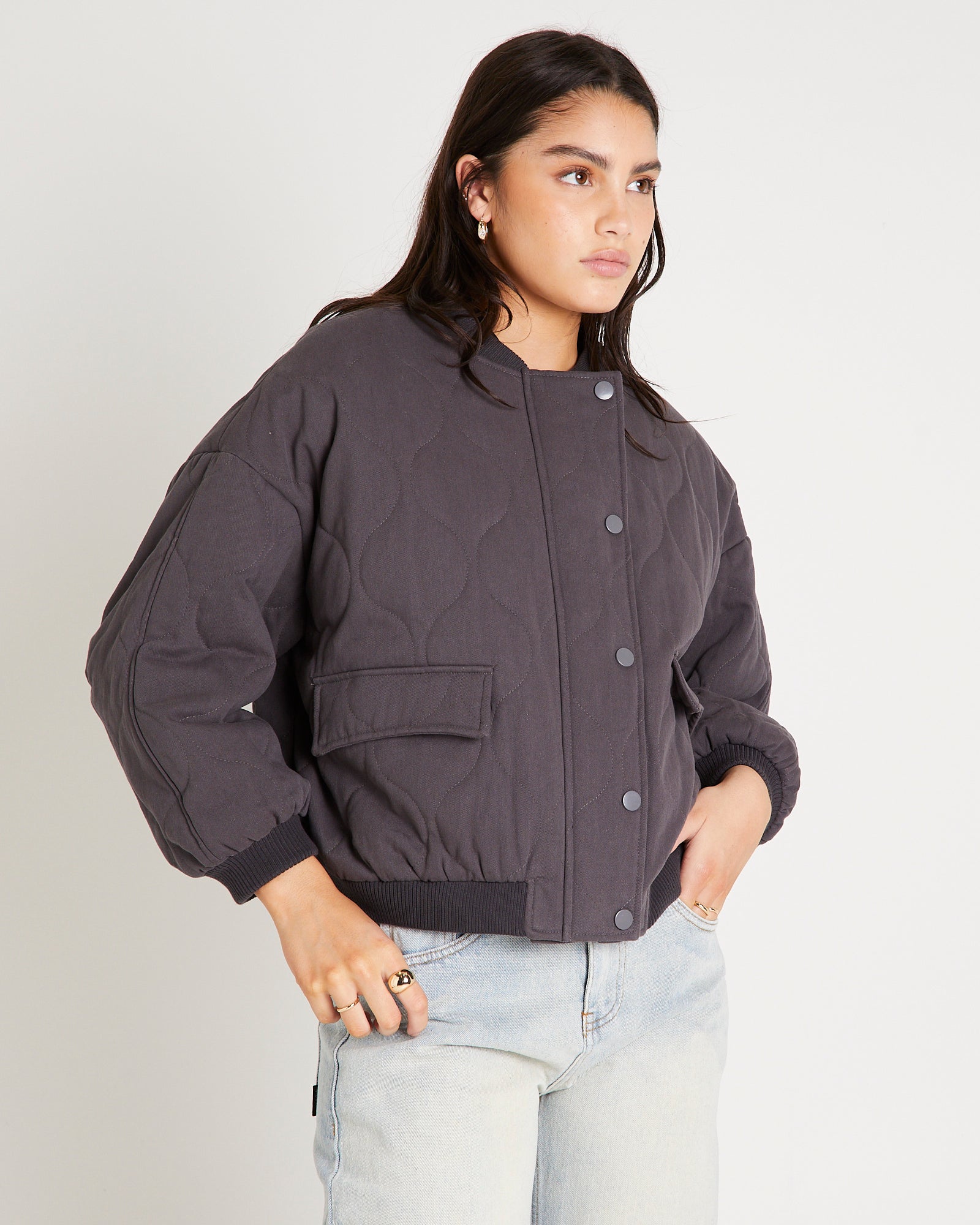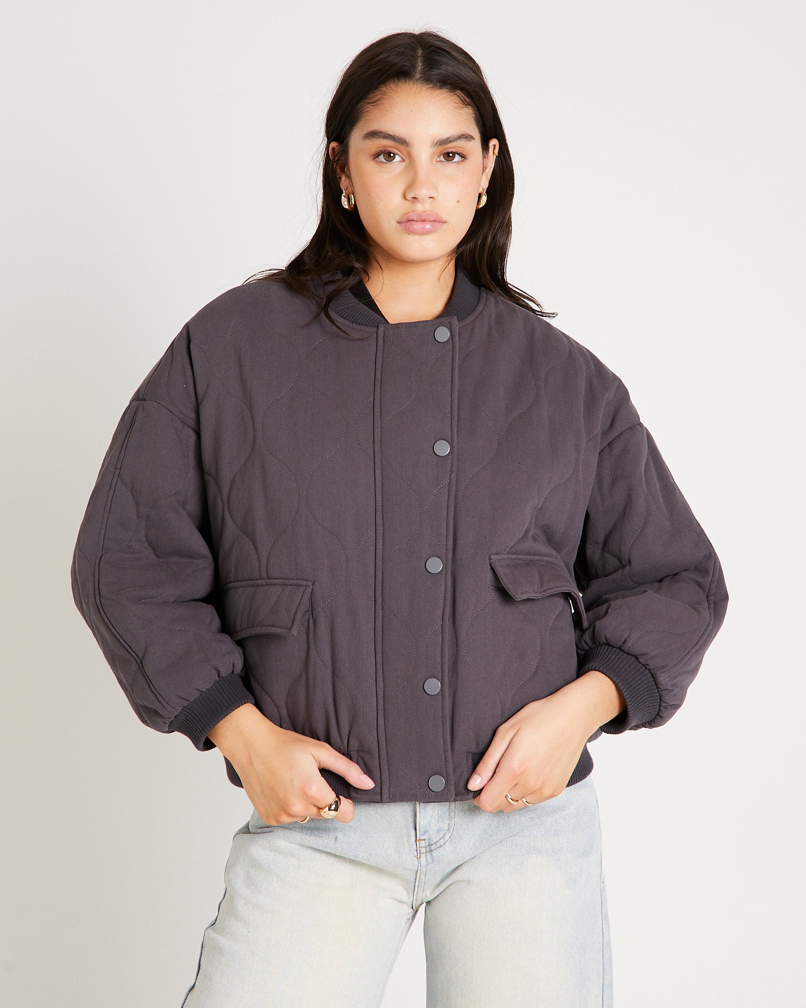 Quilt Detail Oversized Bomber Jacket