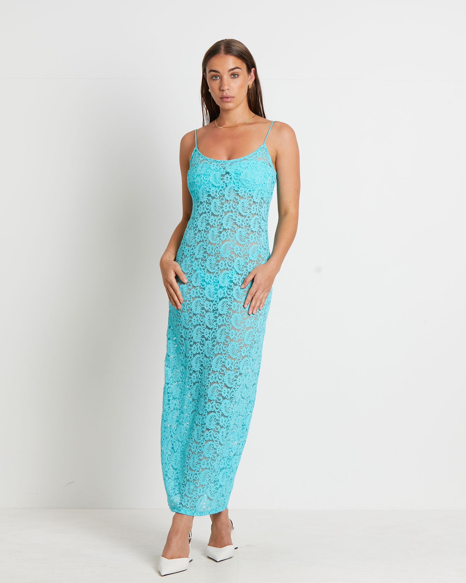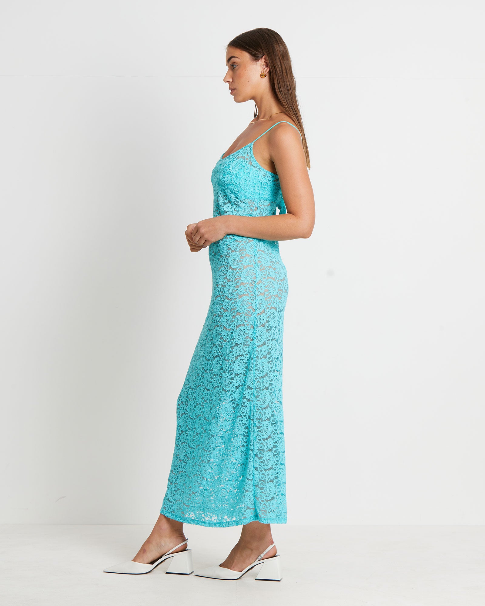 Zayla Lace Maxi Dress in Aqua Blue