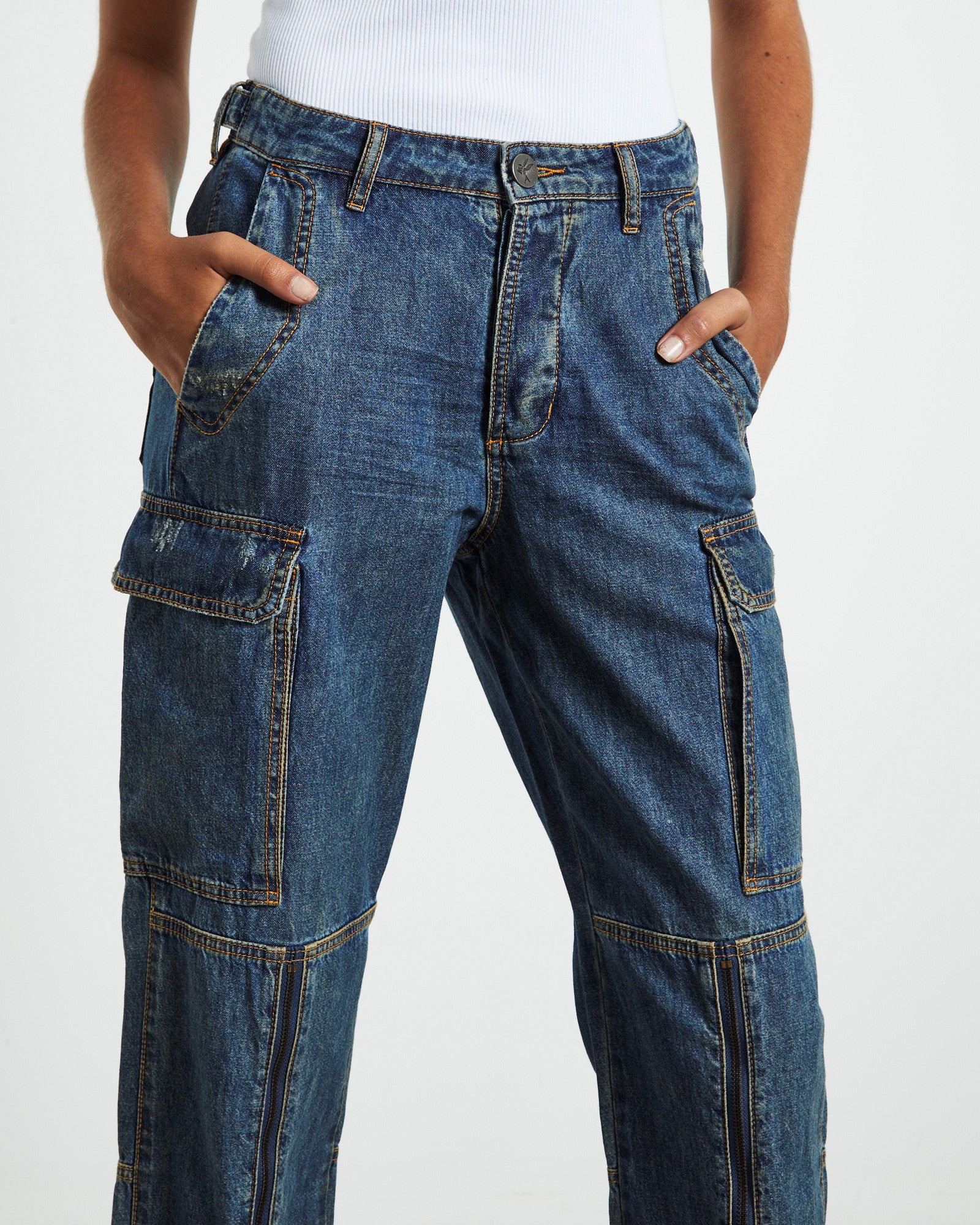 Zipped Cargo Motion Jeans Used Blue